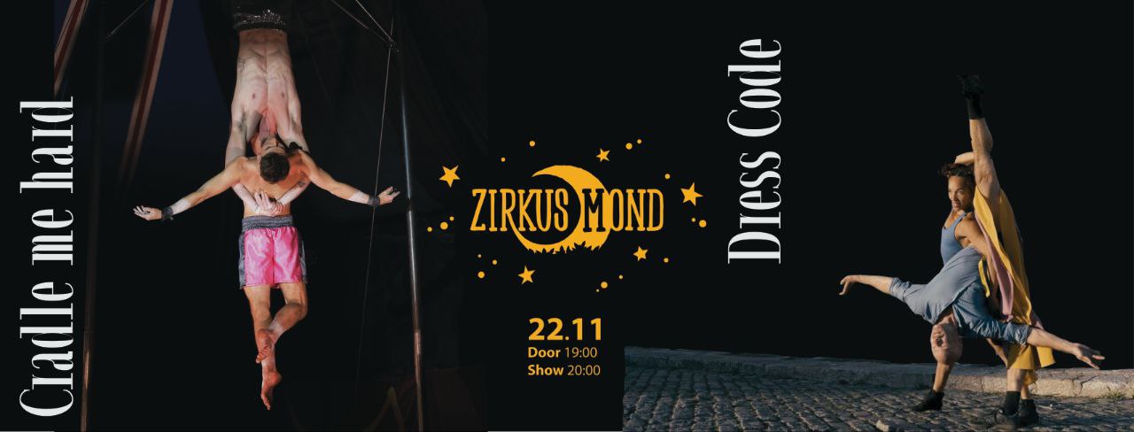 The short piece 'Cradle me hard' by Maximo Occhipinti and Moritz Haase exposes the contrasts a circus performer is confronted with day by day. Around their rarely seen prop, an aerial cradle, Max & Moritz give an insight into their life between carrying and lifting heavy weight and flying high as light as a feather. Fueled by their own experiences they give a demonstration of what it’s like to enter the red carpets of show business after a warm-up on some swampy backstage floor, constantly switching between roles may it be to classical music or the pulse of heavy techno beats. Sometimes these worlds clash and you find yourself face down on the crash mat before you get up, fix your make up, go up there and do it all over again.