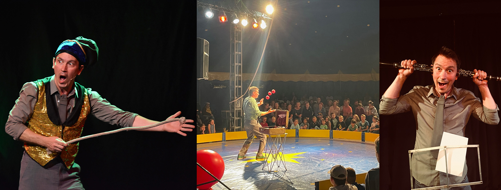 Bei seinen Vorstellungen verbindet er Artistik, Humor und alles was ihm sonst noch begegnet, zu einer begeisternden Mischung aus Artistik, Humor und alles was ihm…(bis hierher hat eigentlich noch niemand diesen Text gelesen)…sonst noch begegnet.